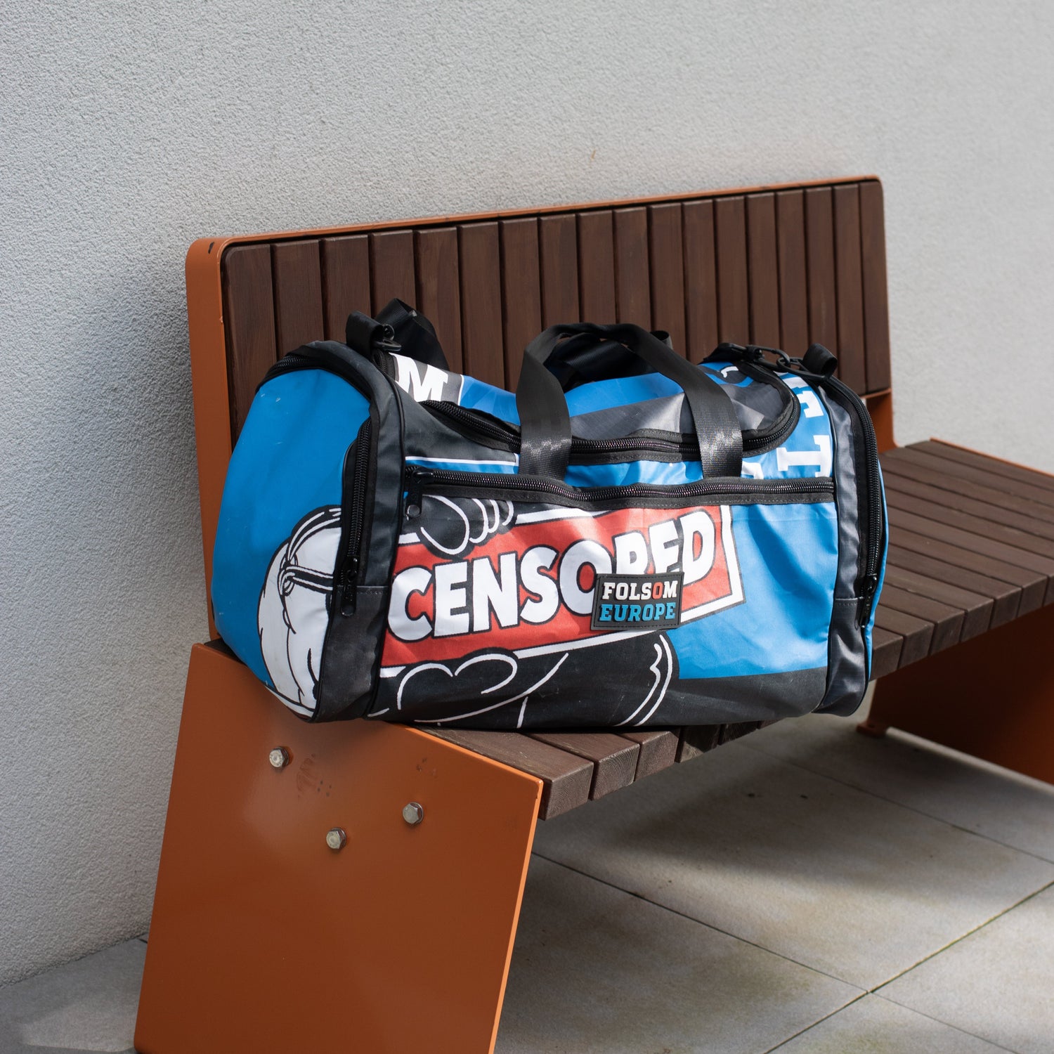 Made from original Folsom Europe banners of past years, each bag is unique, extra spacious, and built tough with recycled seatbelt straps and heavy-duty zippers.