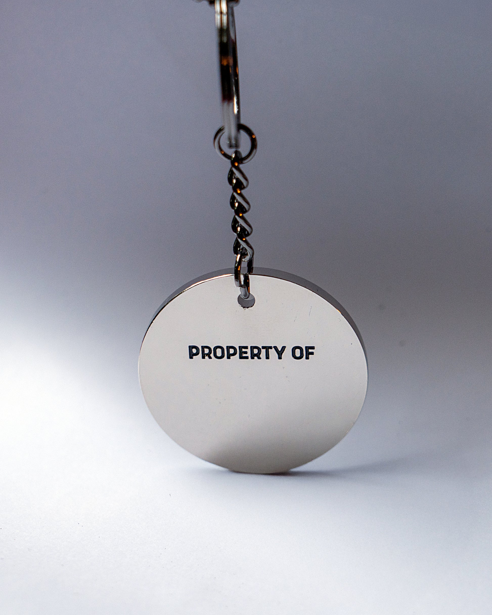 This Good Boy keychain is for those who enjoy wearing their dynamic with confidence. One side features the bold GOOD BOY lettering in classic Folsom colours, while the back reads PROPERTY OF, leaving little room for interpretation.